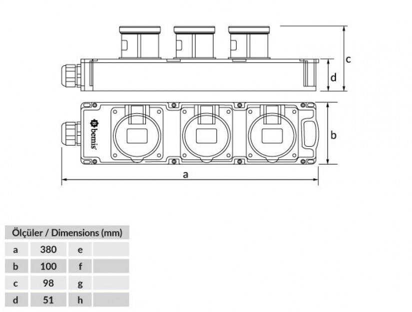 Bemis BK6-2504-4613 3x25A 3P+E 380V IP55 Kauçuk Plastik Trifaze 1 tri 2 mono 3lü Grup Priz