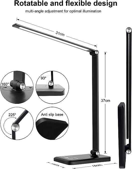 zamanlayıcı, kısılabilir, ayarlanabilir_kol, şarj edilebilir, yoğunluk ayarı için katlanabilir dokunmatik kontrol sistemi Şarj edilebilir lamba gözleri koruyun Cihazları şarj etmek için USB bağlantısı USB üzerinden şarj edilebilir, cıva içermez 10 parlaklık seviyesi otomatik kapanma zamanlayıcısı