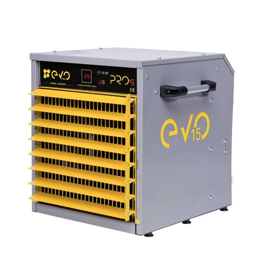 Evo 15 PROs ; kendi modeline dahil olan ısıtıcılar arasında Evo 15 optimum boyutta ve güçte bir üründür. Evo 15 kullanım alanı olarak ele alınacak olursa 90 metre kare ile 200 metre kare gibi bir alan içerisinde ısıtma işlemini verimli bir şekilde gösterebilmektedir. Ürün 380 volt elektrik ile birlikte aktif bir şekilde çalışır ve ürünün mekanizmasından 22 amper değerinde bir akım geçmektedir. Ürünün en fazla dikkat çeken özelliklerinden biri fazlasıyla sessiz olması ve bunun yanı sıra da oldukça hızlı bir şekilde ısı artışının sağlanabiliyor olmasıdır.