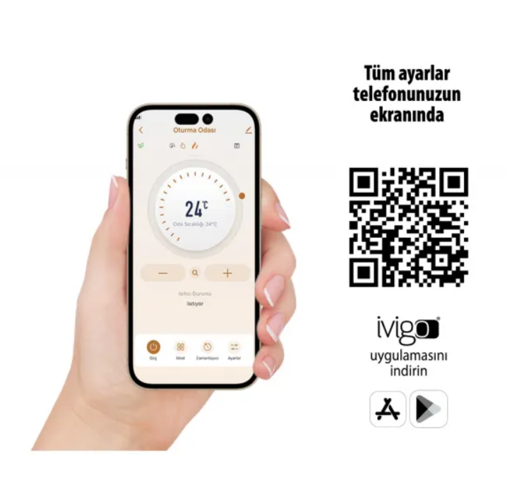 Profesyonel Konvektör ile tüm akıllı özellikler tek ısıtıcıda ve siz neredeyseniz ısıtıcınız da parmaklarınızın ucunda... Uygulamayı telefonunuza yükleyin ve bu rahatlığı hemen yaşamaya başlayın.