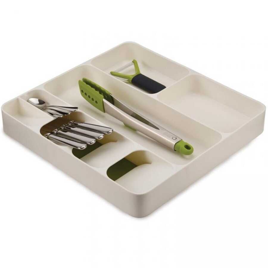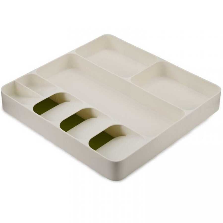 Karmakarışık mutfak gereçleri çekmecelerinize bu pratik ve akıllı çözümle düzen gelecek. Birbirinin üstüne binen beş bölmesinde yemek takımlarını, diğer üç derin bölmesinde ise çeşitli mutfak gereçlerini saklayabilirsiniz. Böylece iki çekmecelik aleti tek çekmecede toplayıp mutfağınızda yer kazanırsınız.