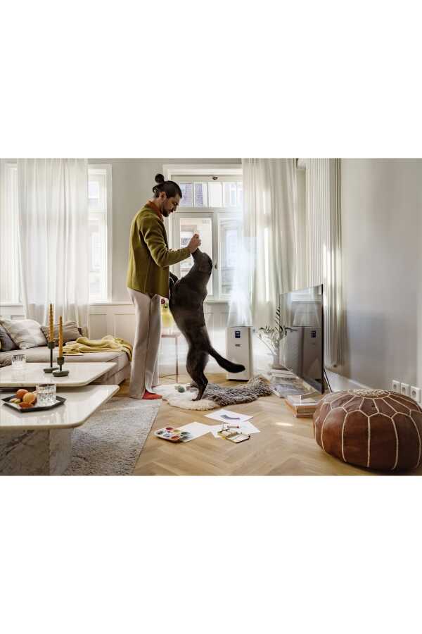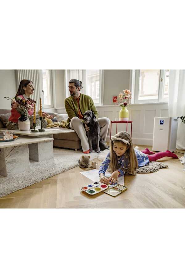 Gelince Sizi ArayalımBüyük iç mekanlar, geniş ofislr ve büyük salonlar için mükemmel hava temizleme çözümü olan AF 50 hava temizleme makinesi, çok katmanlı filtre sistemi sayesinde iç mekan havasını alerjen, kirletici ve patojenlerden temizler. Cihaz üzerinde bir renk kodu aracılığıyla hava kalitesini, sıcaklığı ve bağıl nemi gösteren bir ekran bulunur. Hava temizleyici ayrıca zamanlayıcı işlevi, çocuk güvenlik kilidi, gece modu fonksiyonlarına sahiptir. Yüksek hava akışı performasına rağmen, ultra sessizdir. HEPA 13 filtresi bakteri ve virüsleri %99,95 oranında filtreleyerek yüksek filtre verimliliği sağlar. Ayrıca filtrenin kullanım ömrü, hava kirliliğinin düzeyine ve kullanım yoğunluğuna bağlı olarak yaklaşık bir yıldır. Otomatik mod için yüksek kaliteli lazer sensörü sayesinde mükemmel bir seçimdir. Bu, otomatik modun ve performans seviyesinin hava kirliliği derecesine göre otomatik olarak ayarlandığı anlamına gelir.