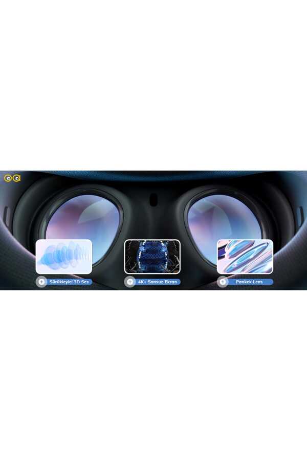 3D mekansal sese sahip entegre hoparlörler, gelişmiş ses netliği, bas performansı, Meta Quest 2'ye göre %40 daha yüksek ses aralığı ve optimum Sol/Sağ eşleştirme özellikleriyle aksiyonun parçası olduğunuzu hissedin. 4K+ Sonsuz Ekran çözünürlüğü sayesinde, ultra gerçekçi oyunlardan büyüleyici sahnelere kadar uzanıp dokunmak isteyeceğiniz muhteşem görseller. Yeniden tasarlanan lensler ve ince profil, olağanüstü çözünürlükle maksimum konforun içinde kalmanıza olanak tanır.