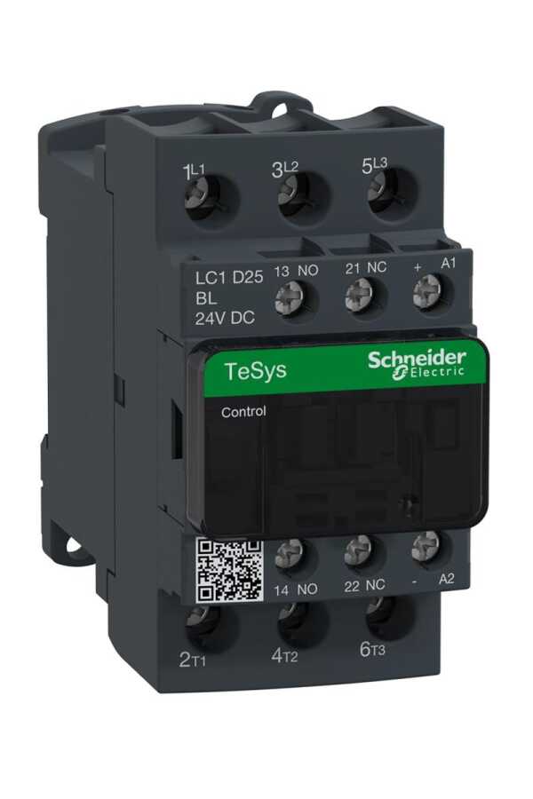 Schneider Electric LC1D25BL, 25 Amper, 11 kW, Güç Kontaktörü, 24 Volt DC, 3 Kutuplu, 1NA+1NK