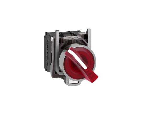 Schneider Electric XB4BK124B5, kırmızı eksiksiz ışıklı mandal buton Ø22 2 konumlu sabit 1NA+1NK 24V